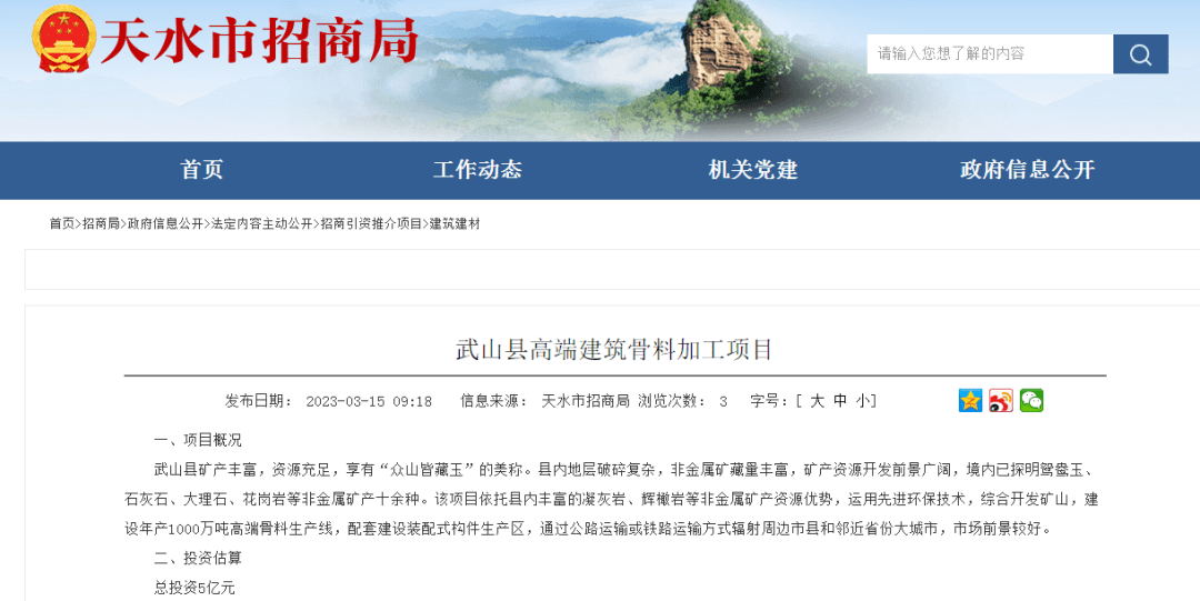 超11億噸儲量年產(chǎn)砂石4000萬噸!甘肅天水2個高品質(zhì)骨料項目合計投資23億元!